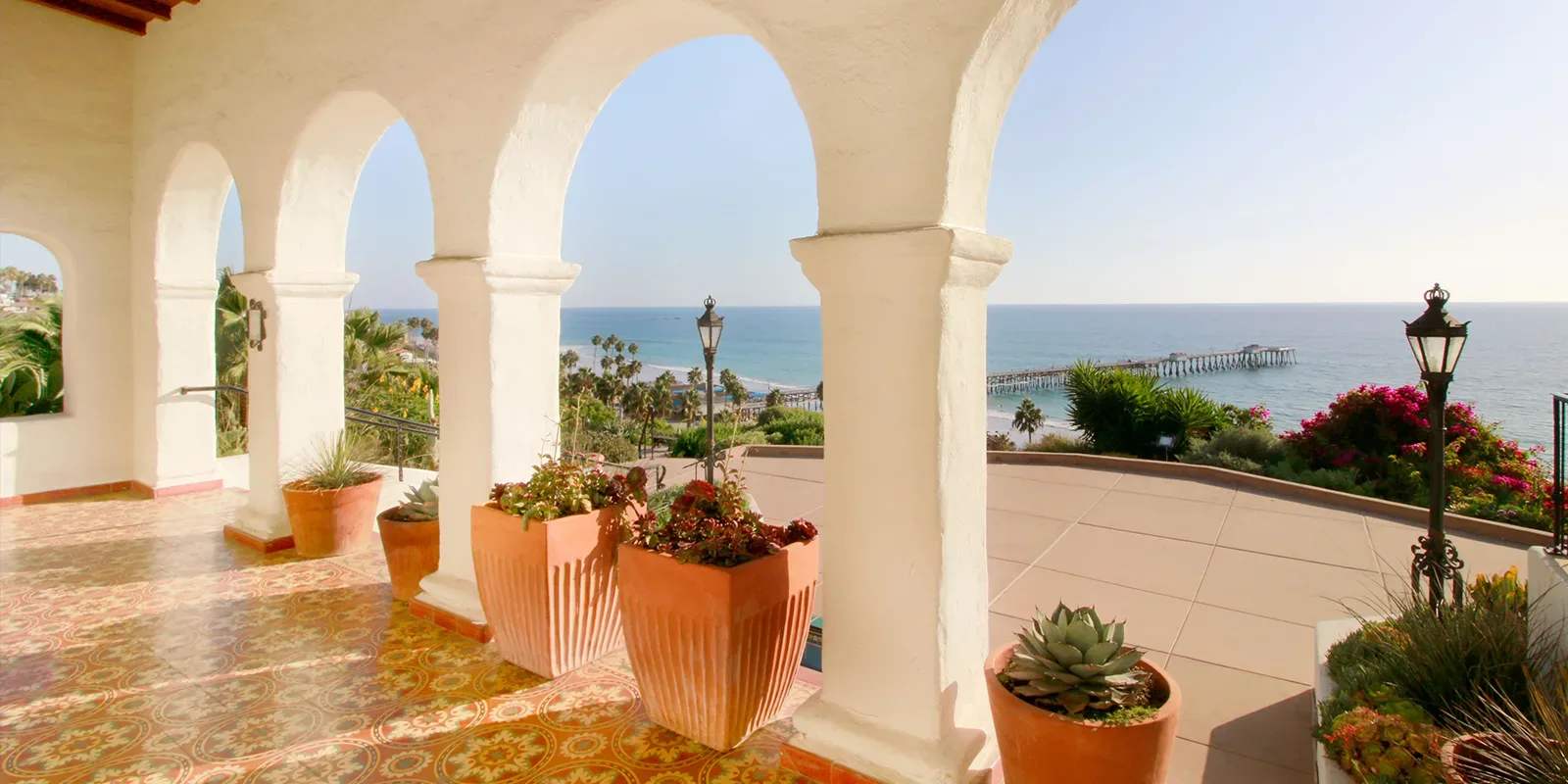 Speaking of Ole Hanson, the oceanfront Ole Hanson Beach Club presents an ideal setting for your favorite San Clemente activity, from special events to memorable weddings. The 1928 Spanish-Revival-style white stucco building features traditional arches, elaborate hand-painted tiles, and ornate stained-glass windows, all of which embellish flexible indoor and outdoor spaces with exceptional views of the San Clemente coastline.