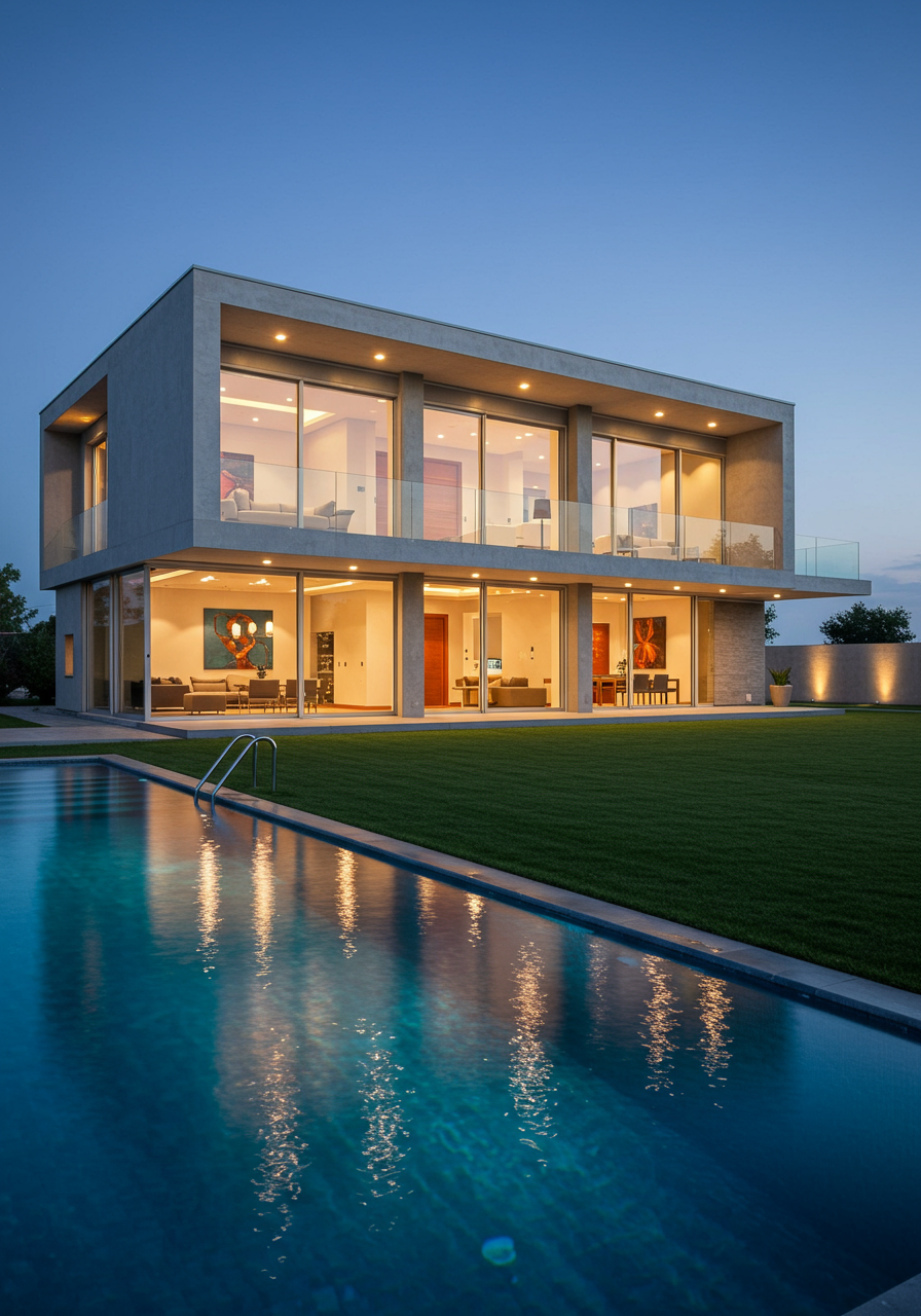 Pool and outdoor lighting designed by CSL Lighting, from Ferguson, makes a modern home even more striking.
