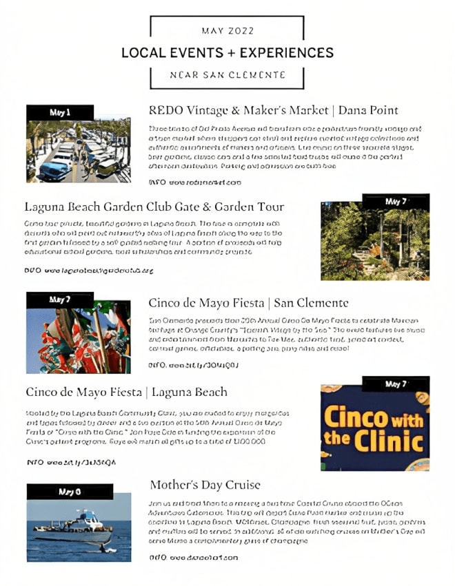 San Clemente presents their 25th Annual Cinco De Mayo Fiesta to celebrate Mexican heritage at Orange County's "Spanish Village by the Sea." The event features live music and entertainment from Mariachis to Tex Mex, authentic food, juried art contest, carnival games, inflatables, a petting zoo, pony rides, and more!